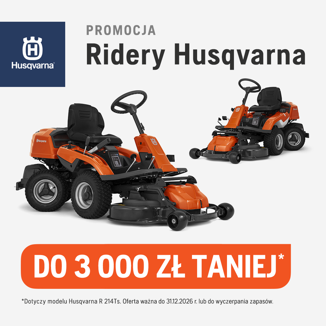 Tylko teraz, przy zakupie wybranych riderów Husqvarna, dodatkowa maszyna akumulatorowa gratis. Oferta ważna do 31.12.2026 roku lub wyczerpania zapasów.