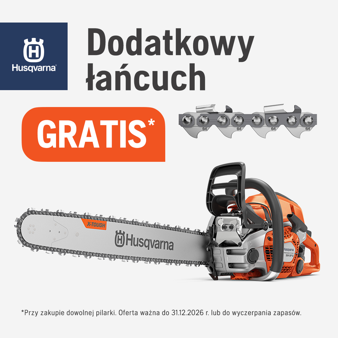 Teraz, przy zakupie dowolnej pilarki lub podkrzesywarki dodatkowy łańcuch otrzymasz GRATIS. Oferta ważna do 31.12.2026 roku lub wyczerpania zapasów.